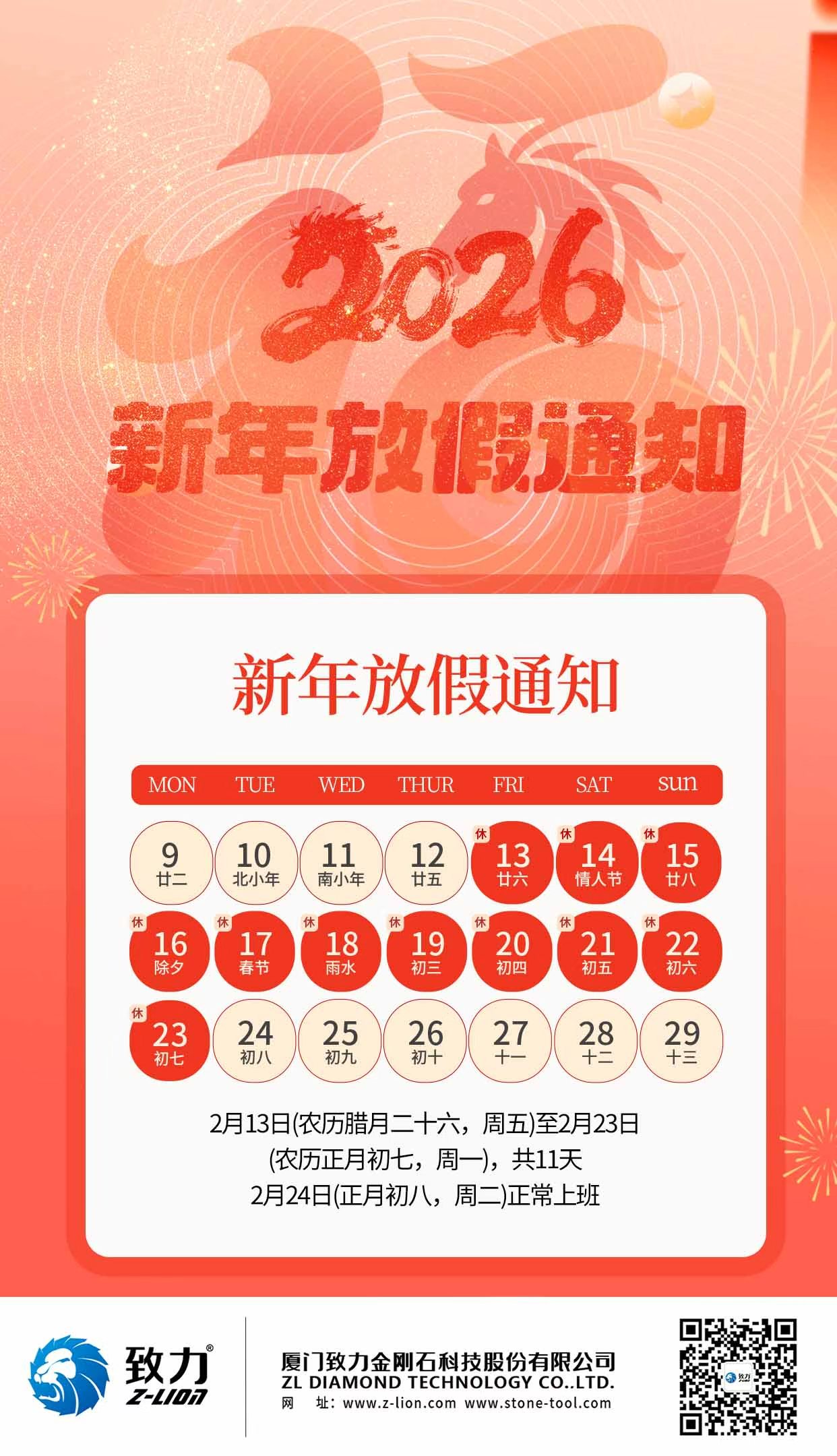 2026新年 | 致力春节放假通知